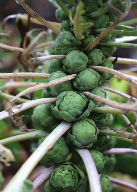 En välvuxen kålstock fullproppad med brysselkål - en läcker råvara på hösten.