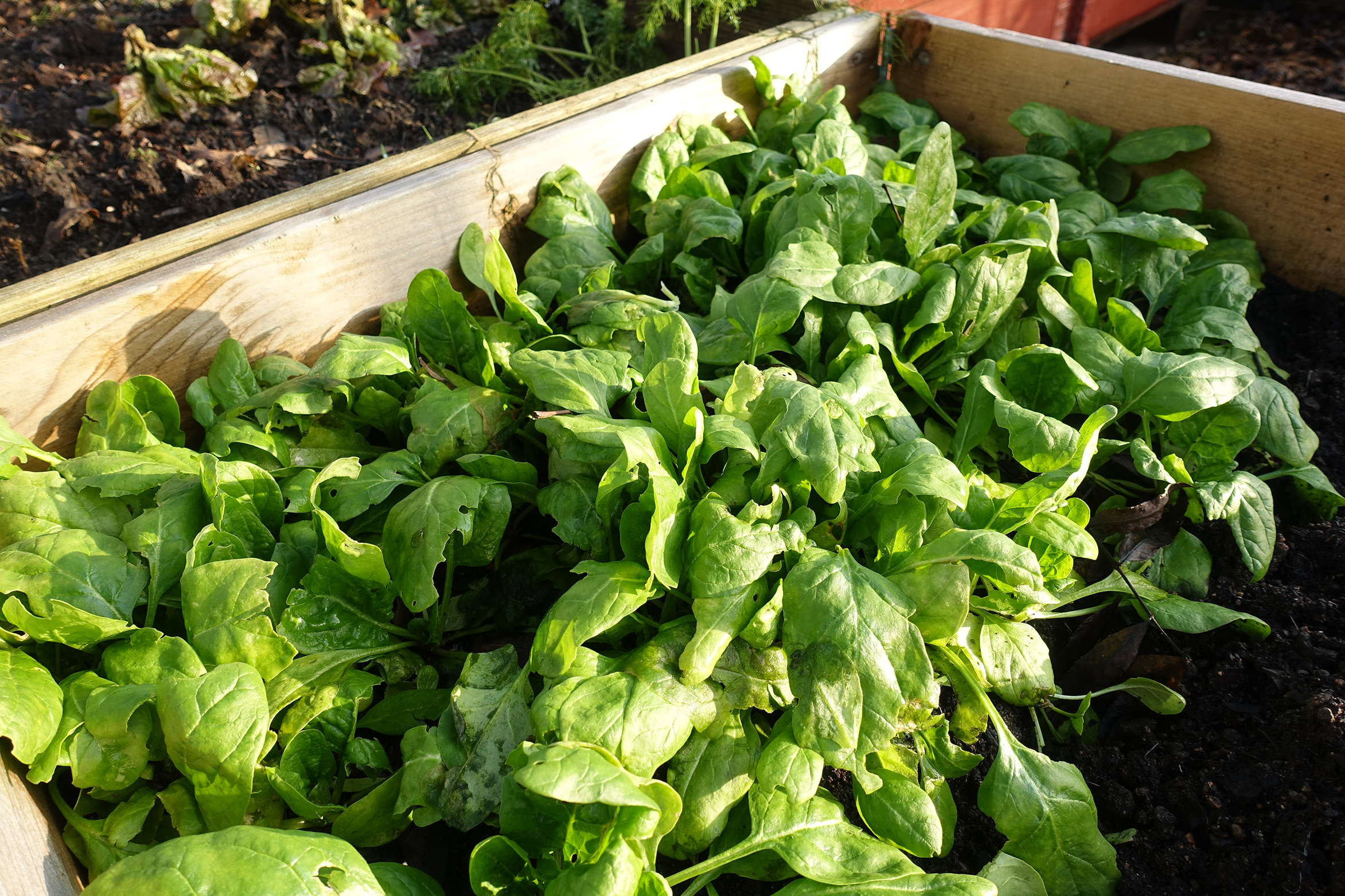 15. november 2019sara bäckmo, skillnadens trädgård, sara backmo, sara's kitchen garden, grönsaker, vegetables, spenat, spinach, pallkrage, odla i pallkrage