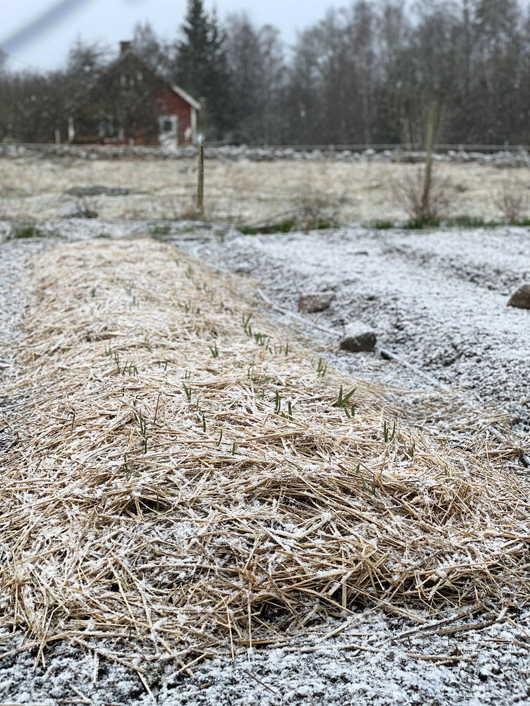 07. april 2021sara bäckmo, sara backmo, skillnadens trädgård, sara's kitchen garden, gräslök, chives, täckodla, täckodling, halm, mulch, raised beds