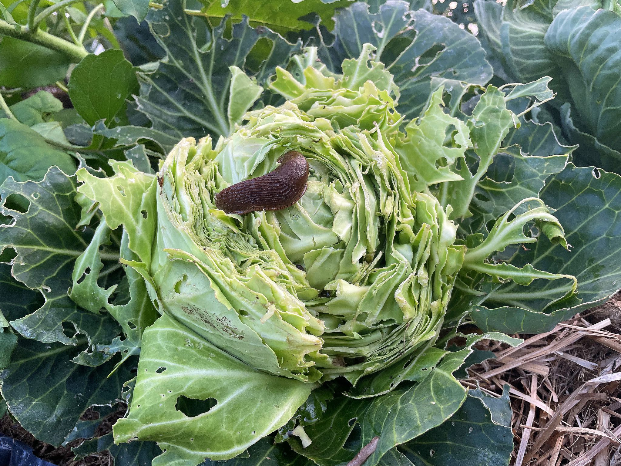 01. augusti 2021Den tidiga sommarkålen är löst knuten och ett hett villebråd för sniglar i min distansodling.