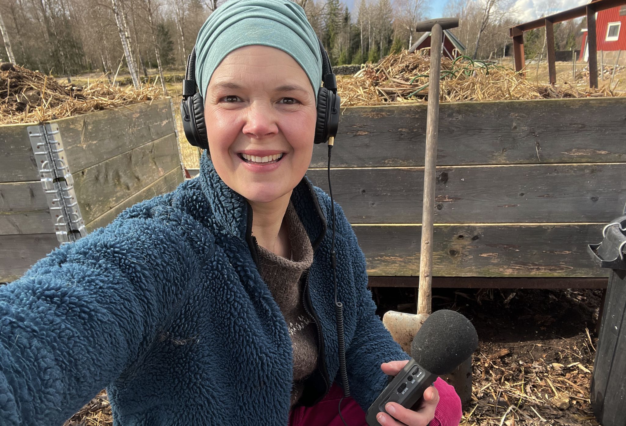 I bakgrunden syns mina två ovanifrånkomposter/Mullnet.