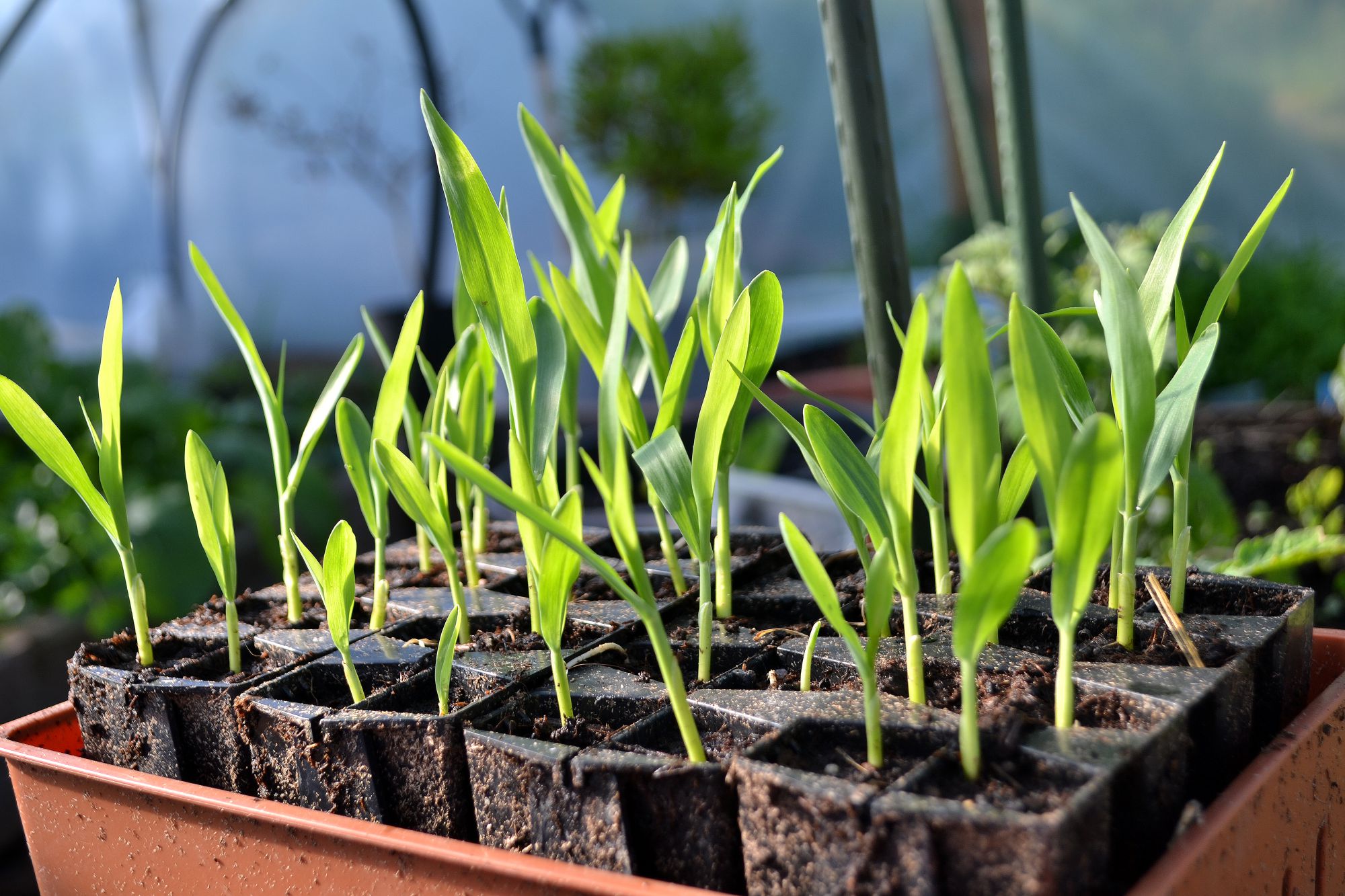 18. maj 2017Ett helt tråg rymmer 40 plantor majs. Mycket på liten yta.