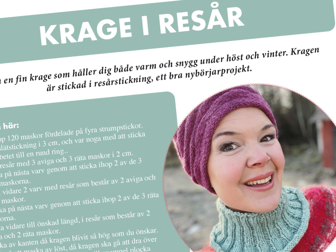 Ni har efterfrågat ett gemensamt stickprojekt under hösten. Hurra! Att sticka är så mysigt och om vi dessutom gör det till en gemensam happening känns det extra kul. Nu drar vi igång ett litet projekt att testa med; en liten praktisk och väldigt snygg krage som också du som är helt ny kan vara med på.