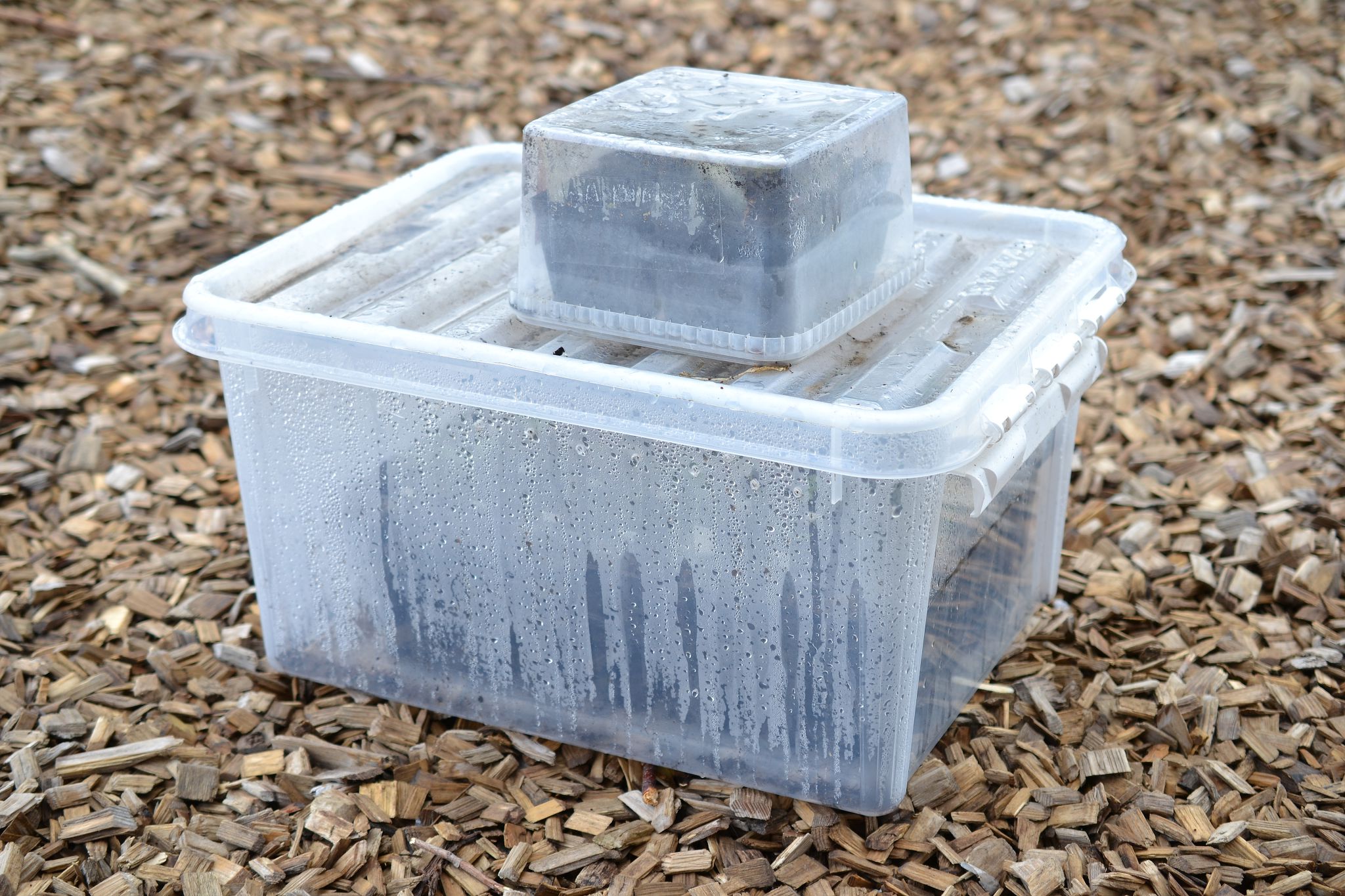 Pluggbrättet kan sättas i en back med hål borrade i, det blir ett litet minidrivhus.
