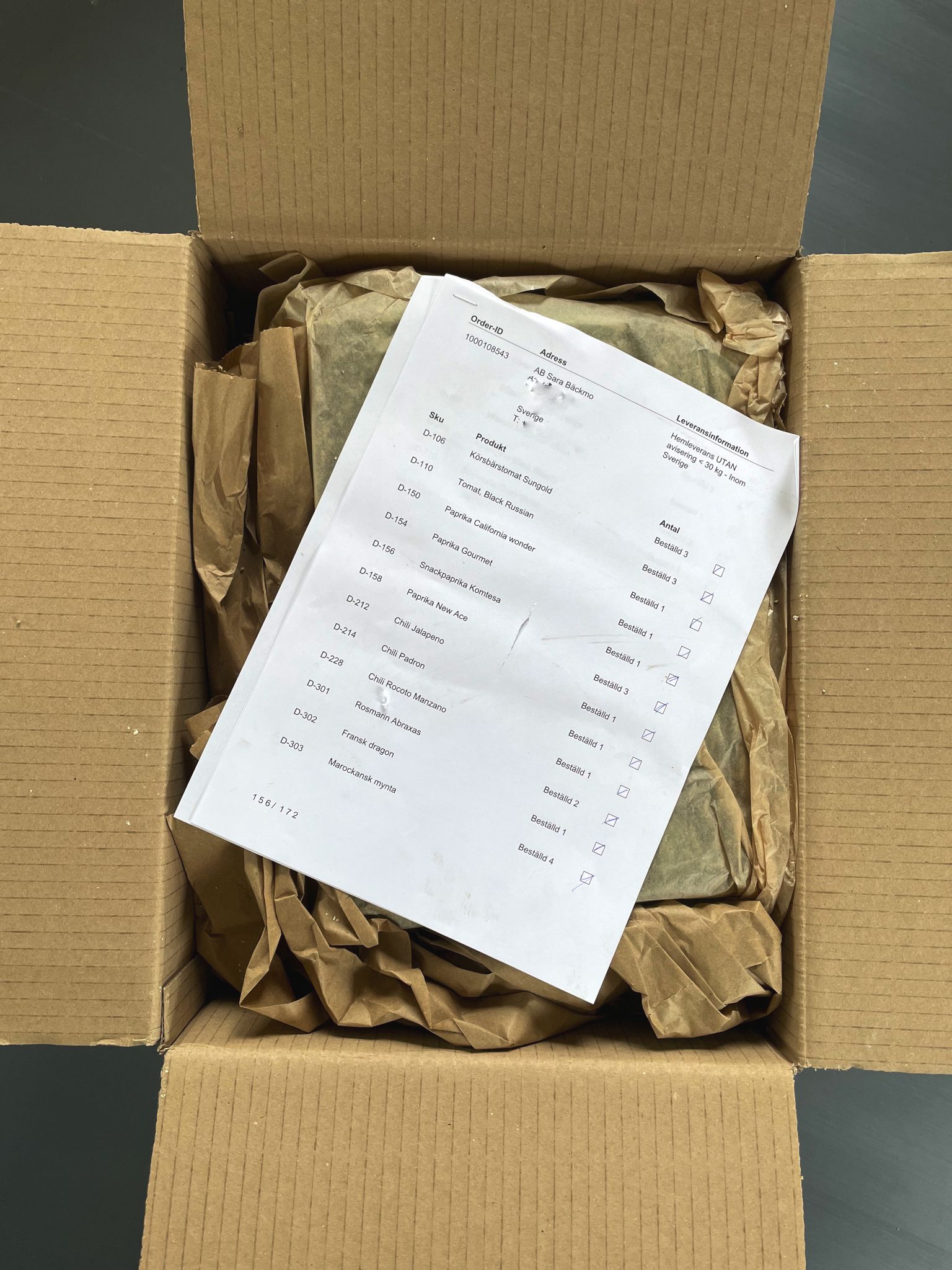 14. april 2021Så här såg min kartong ut när den anlänt och öppnats.