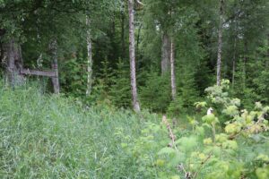 Precis utanför dörren till mitt tunnelväxthus ser det ut så här. Det är orimligt mycket jobb att konsekvent röja gräs och sly på tomten, dessutom ligger angränsande hage bara någon meter bort från växthuset. Det gör varken till eller från.