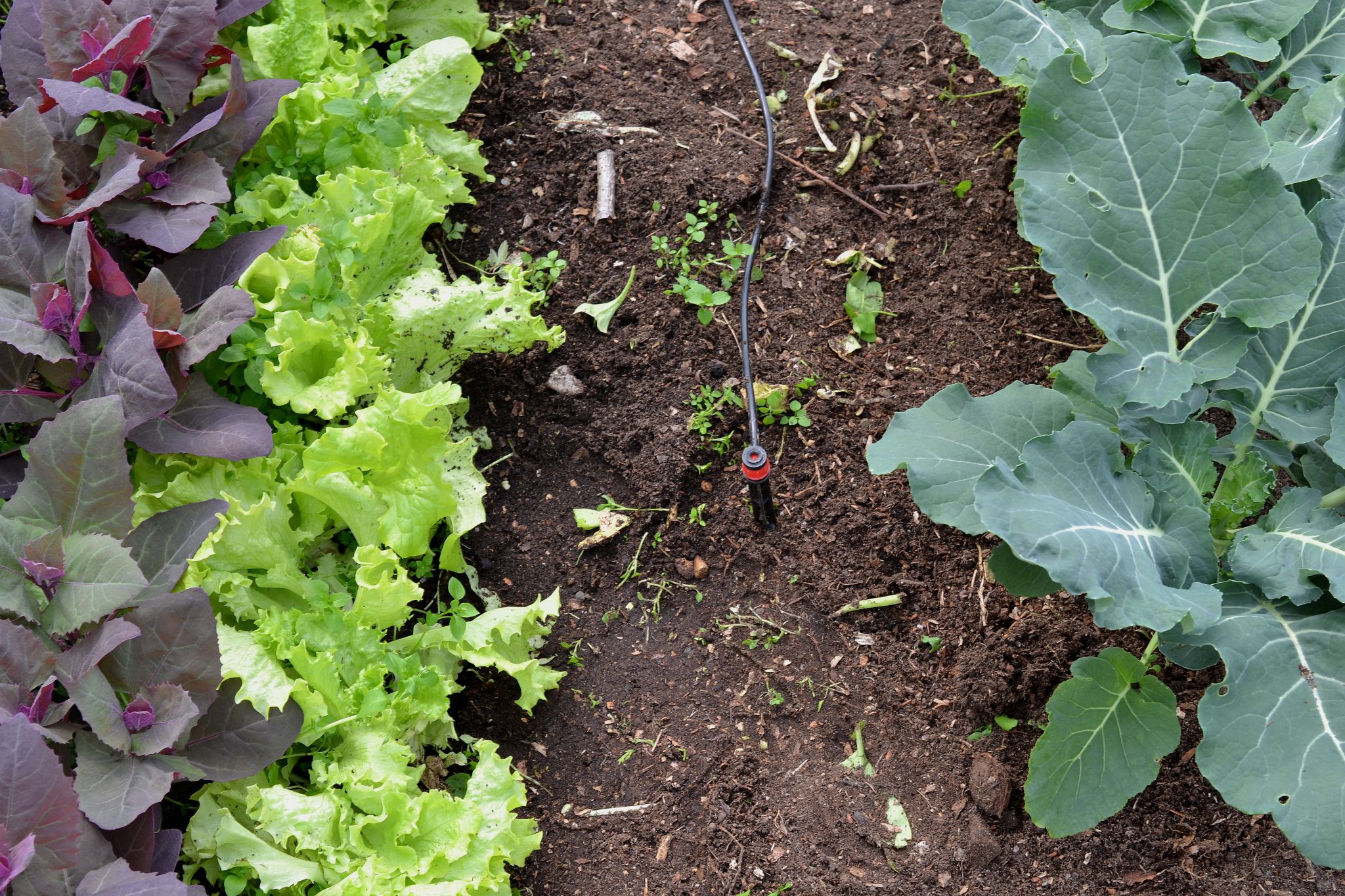 Tänk på jorden som en levande organism. Du behöver hela tiden ge den mat som håller den på gott humör. Så fort en jordplätt blivit ledig kan du gödsla lite, inför att nya grödor sätts i jorden. Här växer broccoli och sallat i mitt växthus.