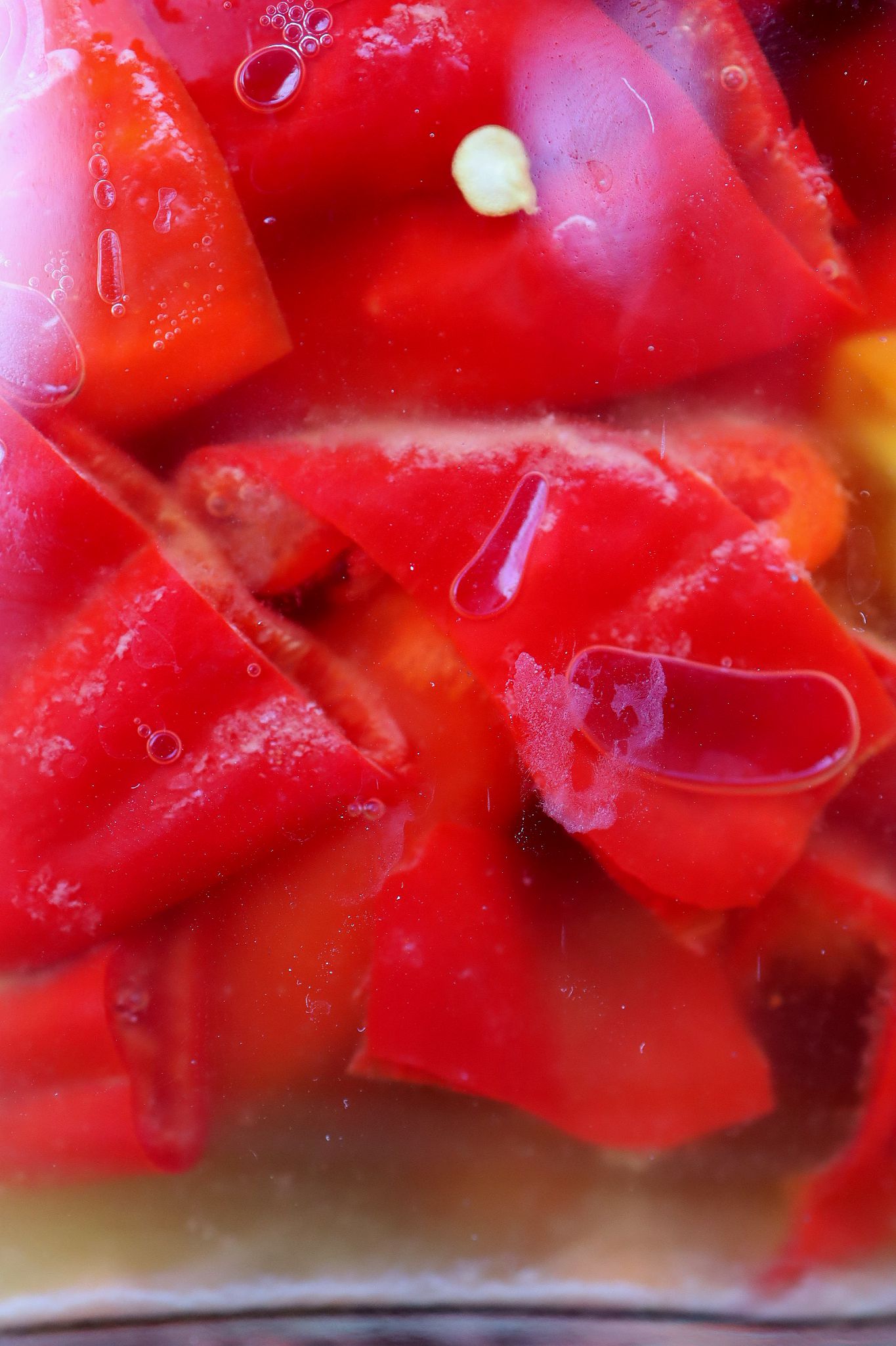 Jag har fermenterat mina chilis hela - det är så snyggt. Men det går lika bra att mixa såsen innan innehållet jäser i rumstemperatur.