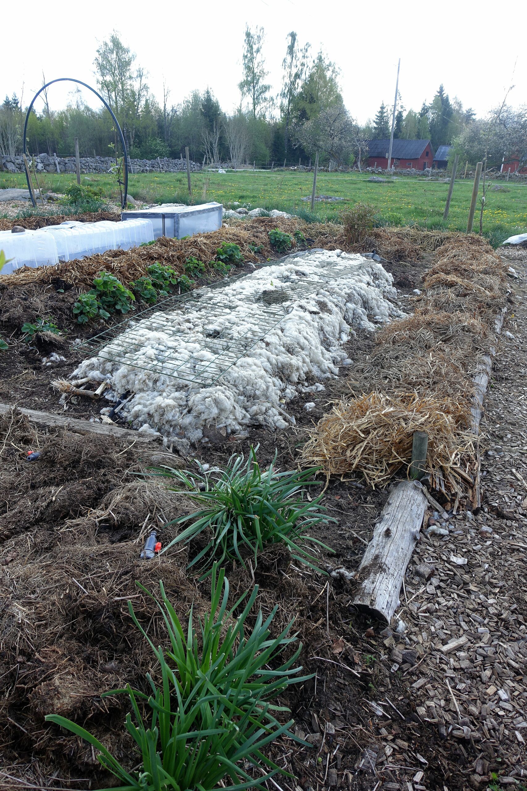 fuktslang, drip irregation, soaker hose, hose, vattenslang, bevattning, droppbevattning, sara bäckmo, sara backmo, sara's kitchen garden, skillnadens trädgård, täckodling, mulch, wool, chinese chive