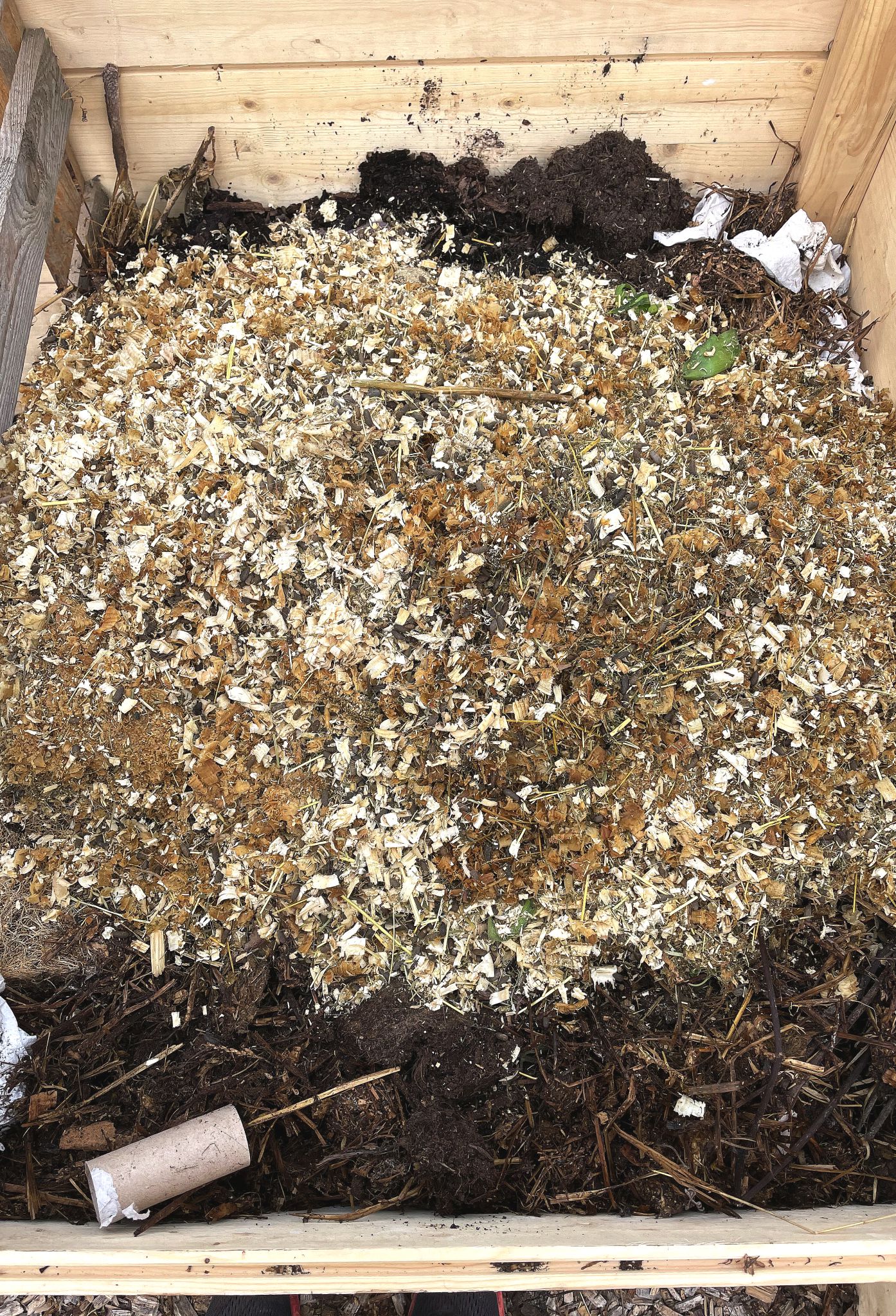 05. april 2021Här har jag i alla hast tömt ner marsvinsgödseln i trädgårdskomposten.