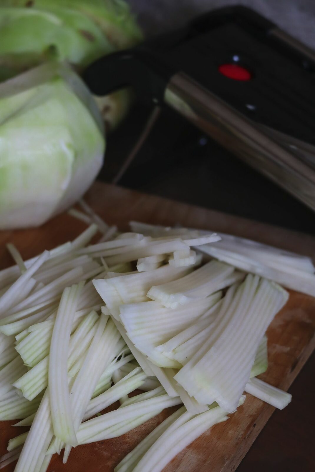 Tips: Köp en rejäl mandolin till stavar och skivor av kålrabbi