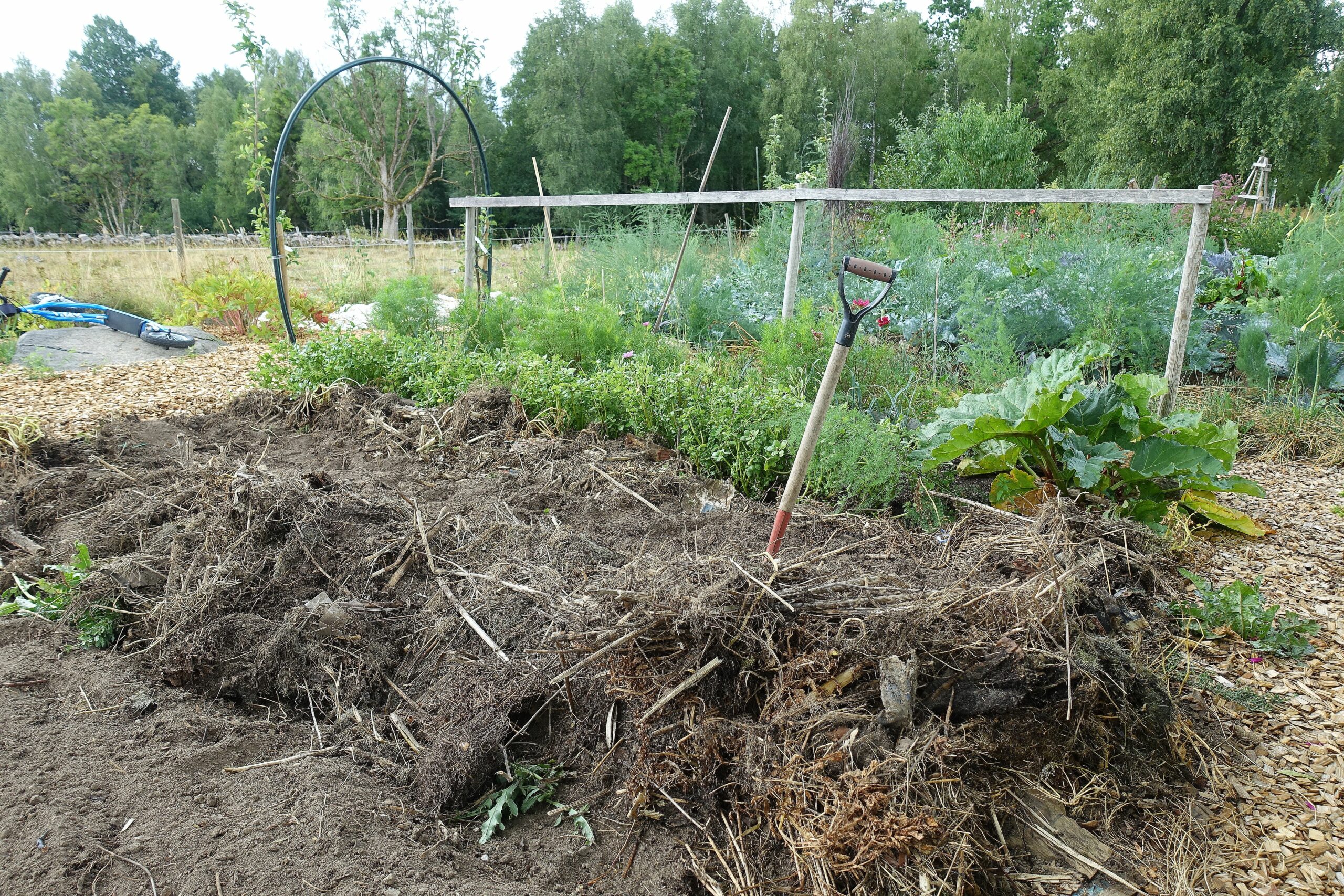 sara bäckmo, sara's kitchen garden, skillnadens trädgård, sara backmo, odlingsbäddar, land, köksträdgård, trädgård, potatisland, mulched garden, mulch, täckodling