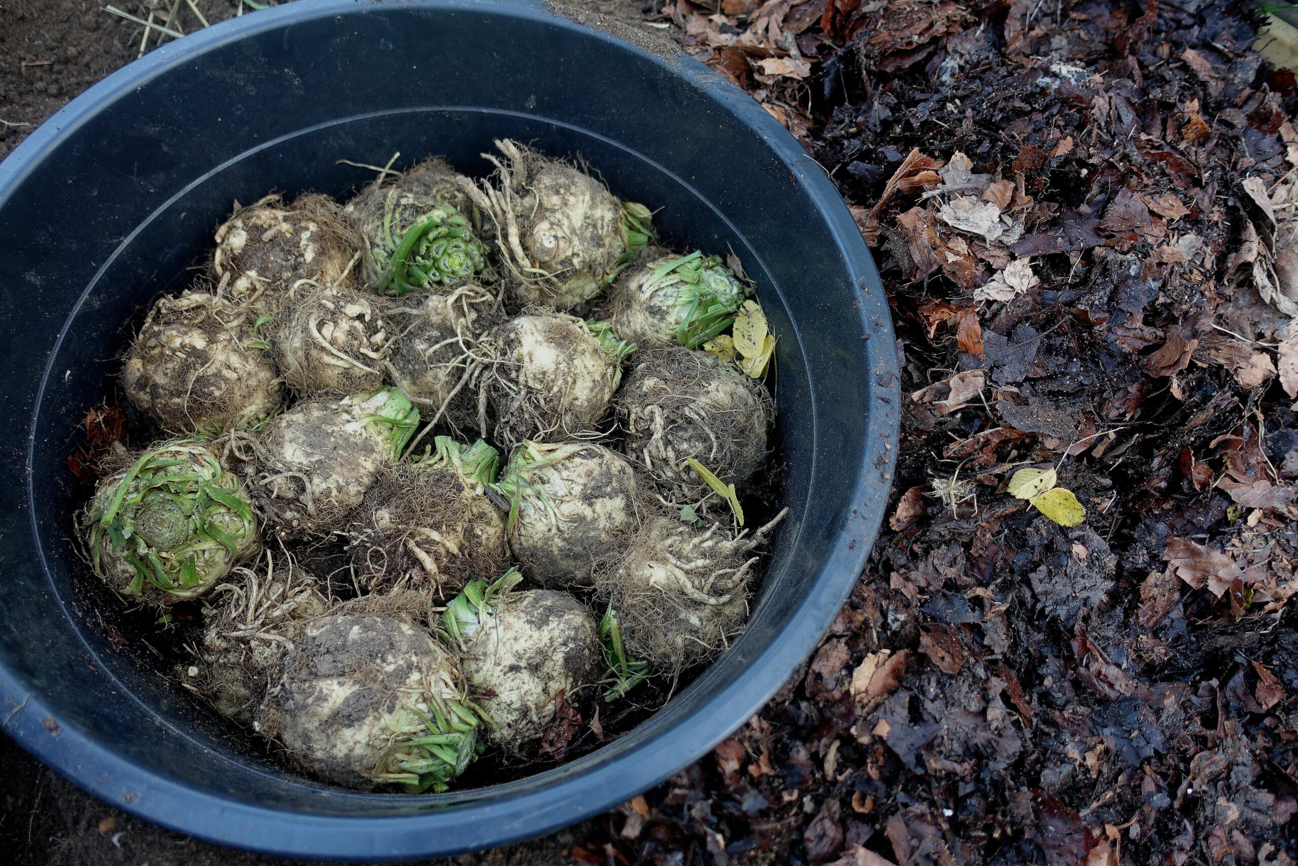 stuka, clamp, storing vegetables, löv, lagra grönsaker, leafes, sara bäckmo, sara backmo, skillnadens trädgård, sara's kitchen garden, rotselleri, celeriac,