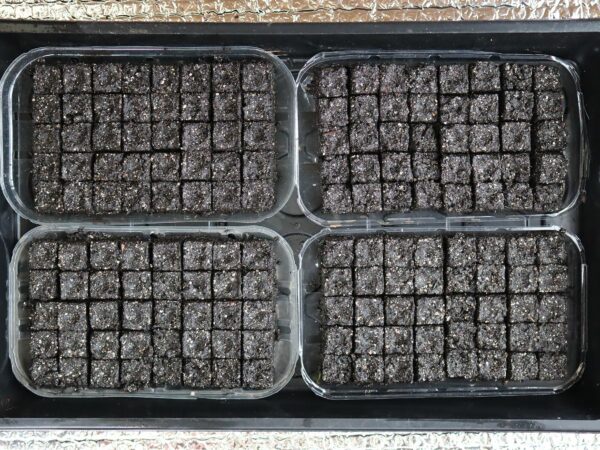 Klart! Nu har jag lassat på tång på toppen, rakt över fröerna. Nu står krukan på en komposthög utomhus för att fuktas på naturligt sätt.