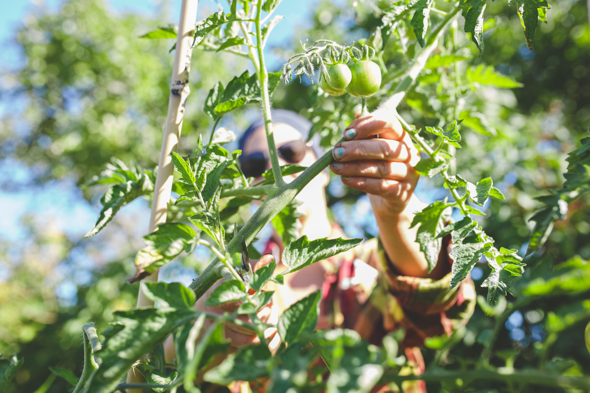 Sara beskär tomater