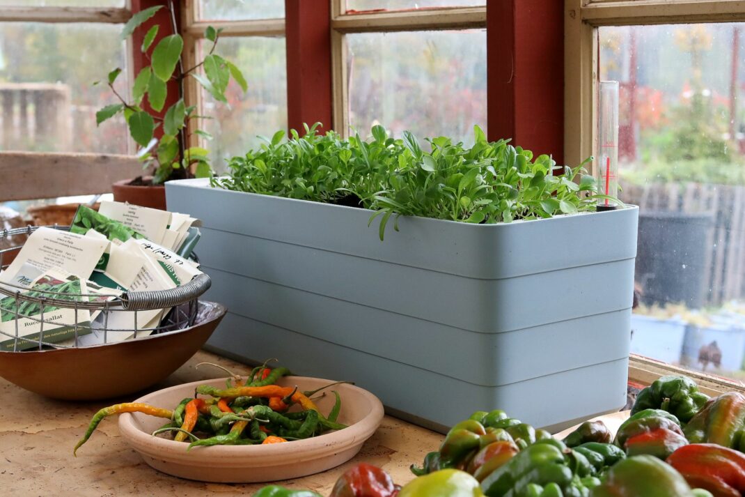 Min självbevattnande kruka/tråg såddes den 23 sepbember. Tråget är av en modell som heter Berberis. Väldigt bra! Finns både stora och små.