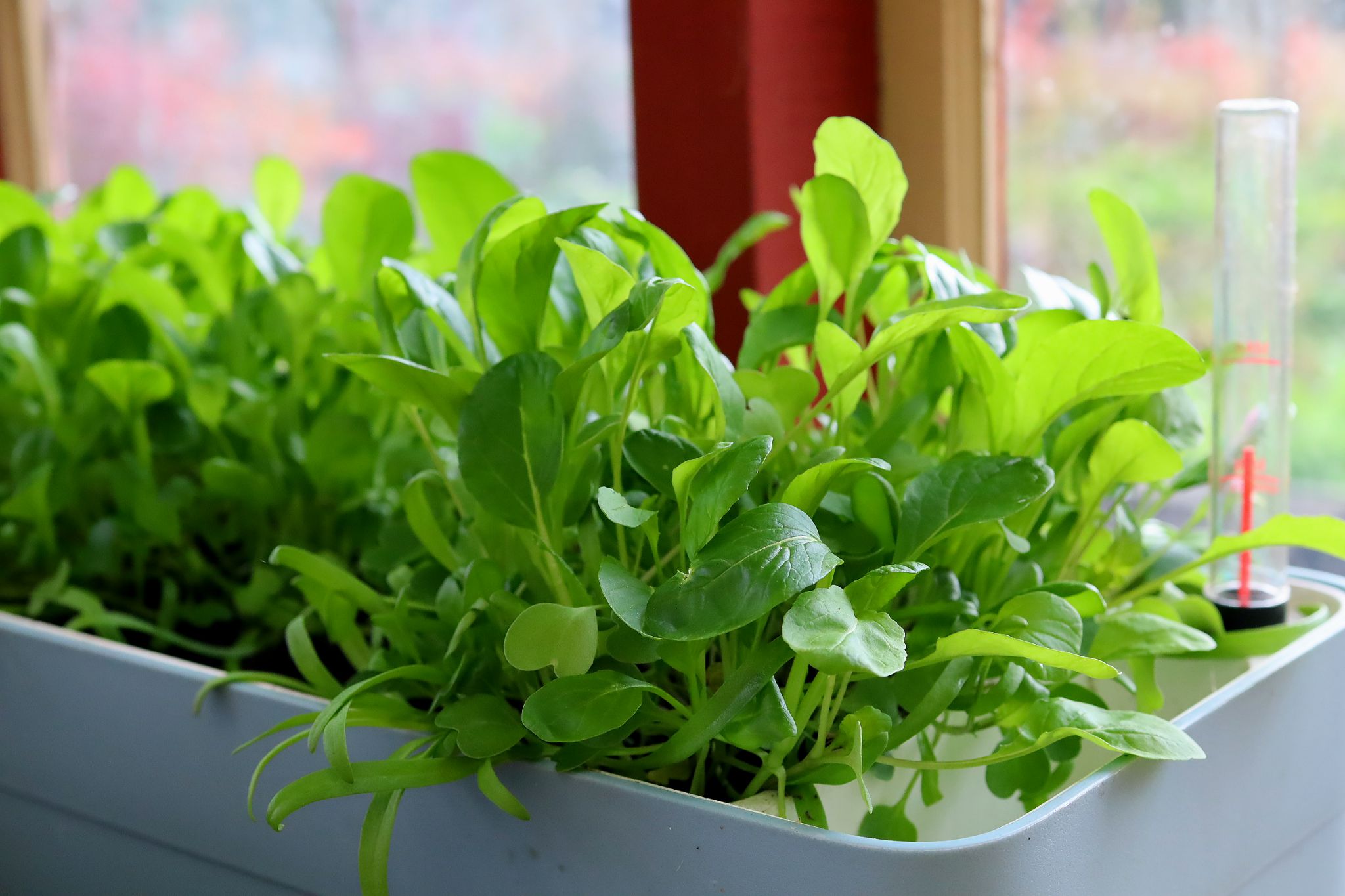sara bäckmo, höstsådd, sådd, bladgrönsaker, berberis, självbevattnande kruka, komatsuna, spenat, rucola, växthus, glasväxthus