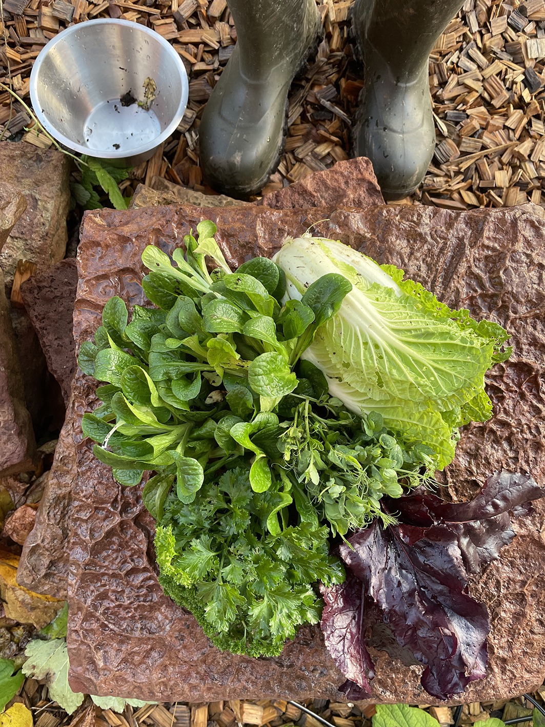 19. november 2020sara bäckmo, sara backmo, skillnadens trädgård, sara's kitchen garden, vegetable garden, berghem, sallat, lettuce, persilja, parsley, vintersallat, lamb's lettuce, ärtskott, peasprouts
