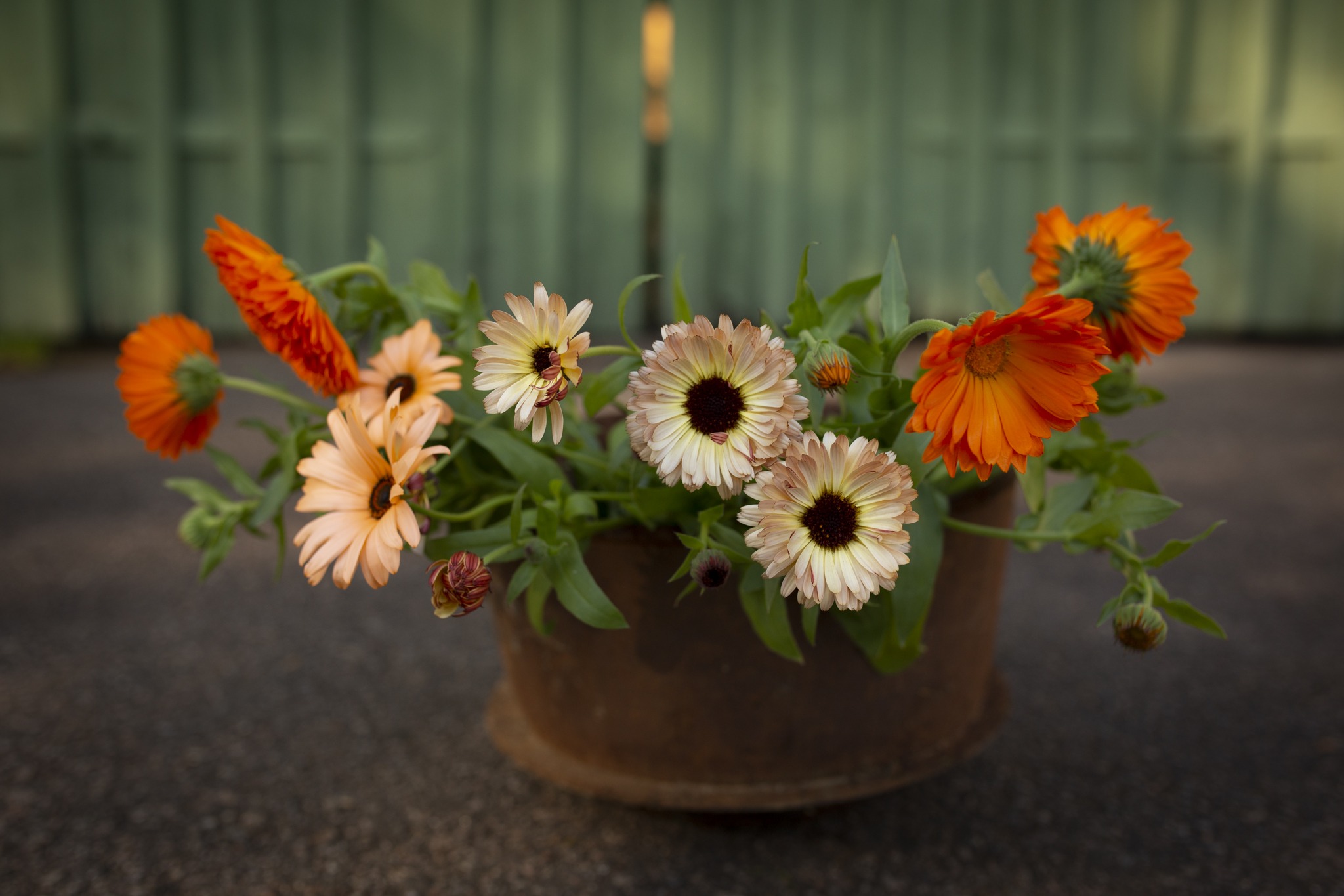 ringblomma, marigold, bouquet, snittblommor, bud, knopp, blomma, flower, sara bäckmo, sara backmo, skillnadens blommor, skillnadens trädgård, sara's kitchen garden,