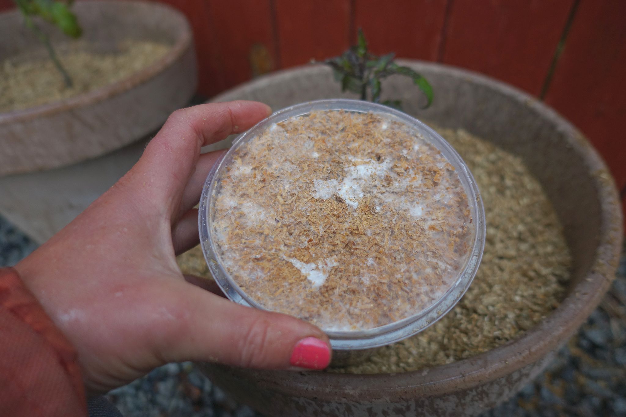 03. augusti 2025sara bäckmo, skillnadens trädgård, svampodling, kruka, odla svamp, ostronskivling, svamp, mycel,