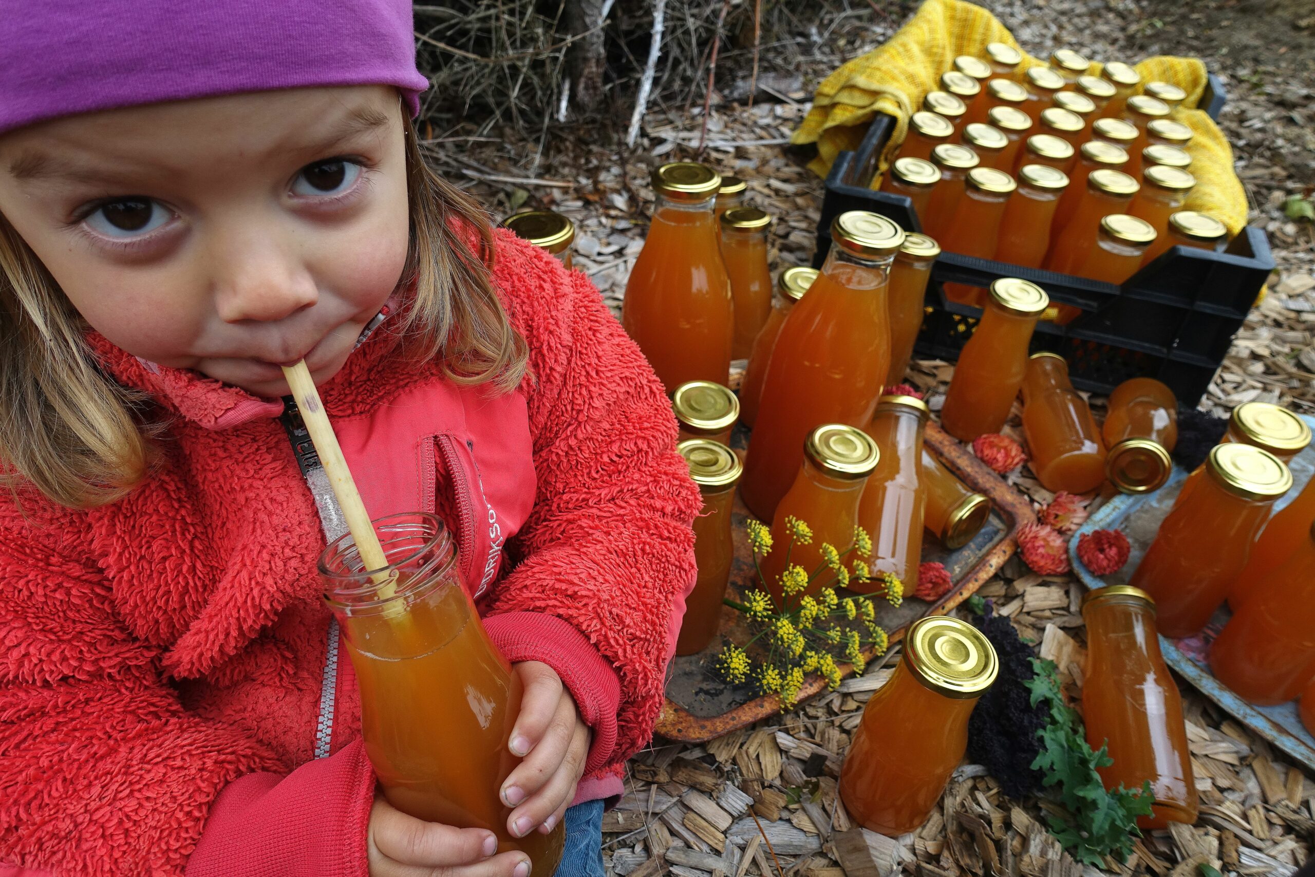 Belöningen efter att ha stått ut med en stund då jag fotograferat. Alla mina barn älskar äppelmust och det är extra gott när man gjort den själv!
