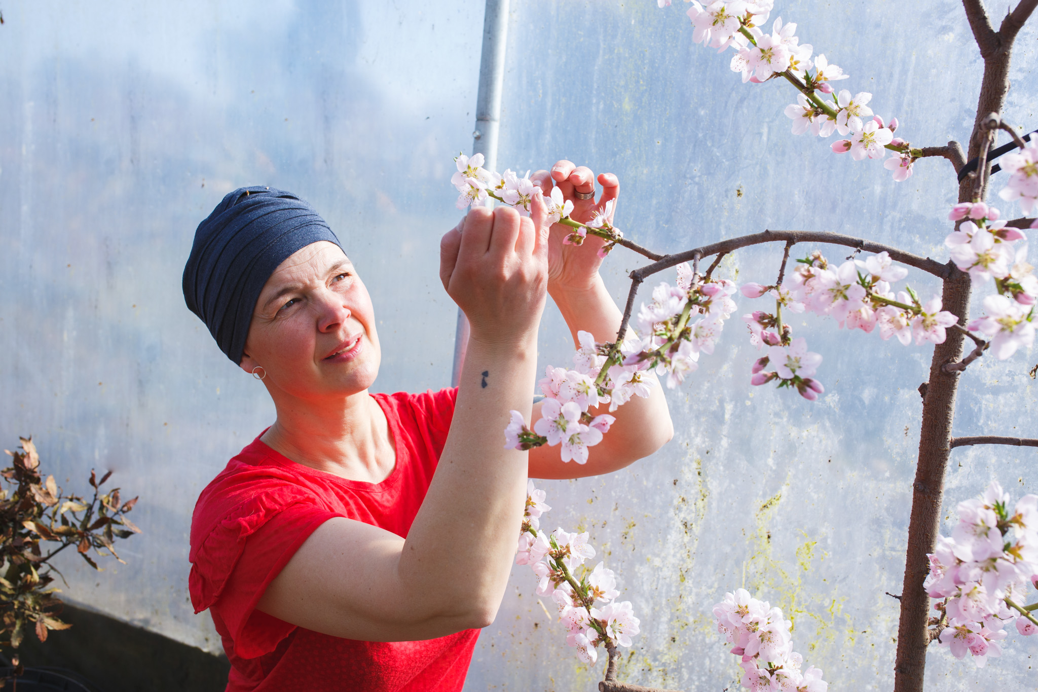 sara bäckmo, sara backmo, skillnadens trädgård, sara's kitchen garden, peach tree, persikträd, pollinera, pollinate
