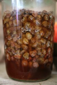 Russinjäst är vätskan från blötlagda russin. Andra torkade frukter och bär går också att använda.