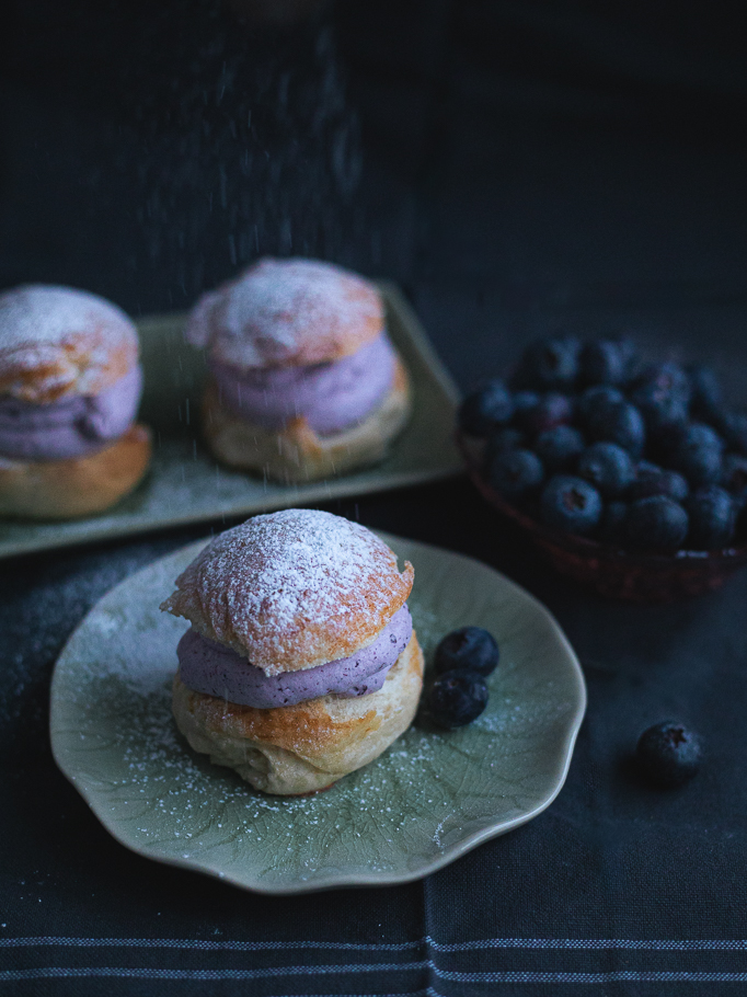 Semlor med blåbärsgrädde och vaniljkräm