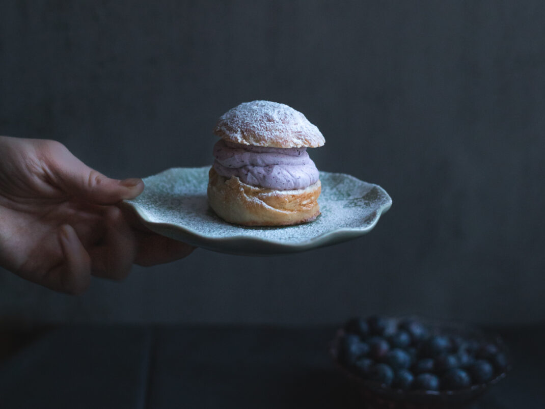 Semlor med blåbärsgrädde och vaniljkräm