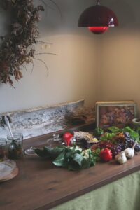 19. september 2025Ett trivsamt hörn för både jobb och skapande. Snart byter grönsakerna plats med symaskinerna!