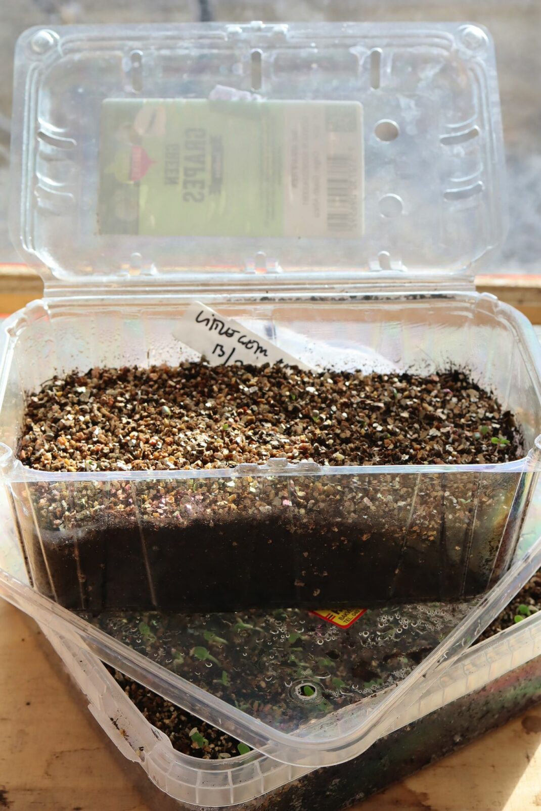 Min sallat såddes 13 februari 2026. Och den 8 mar 2026 gror det i alla fyra byttor med sådder - oavsett var de står. Visst är det häftigt!