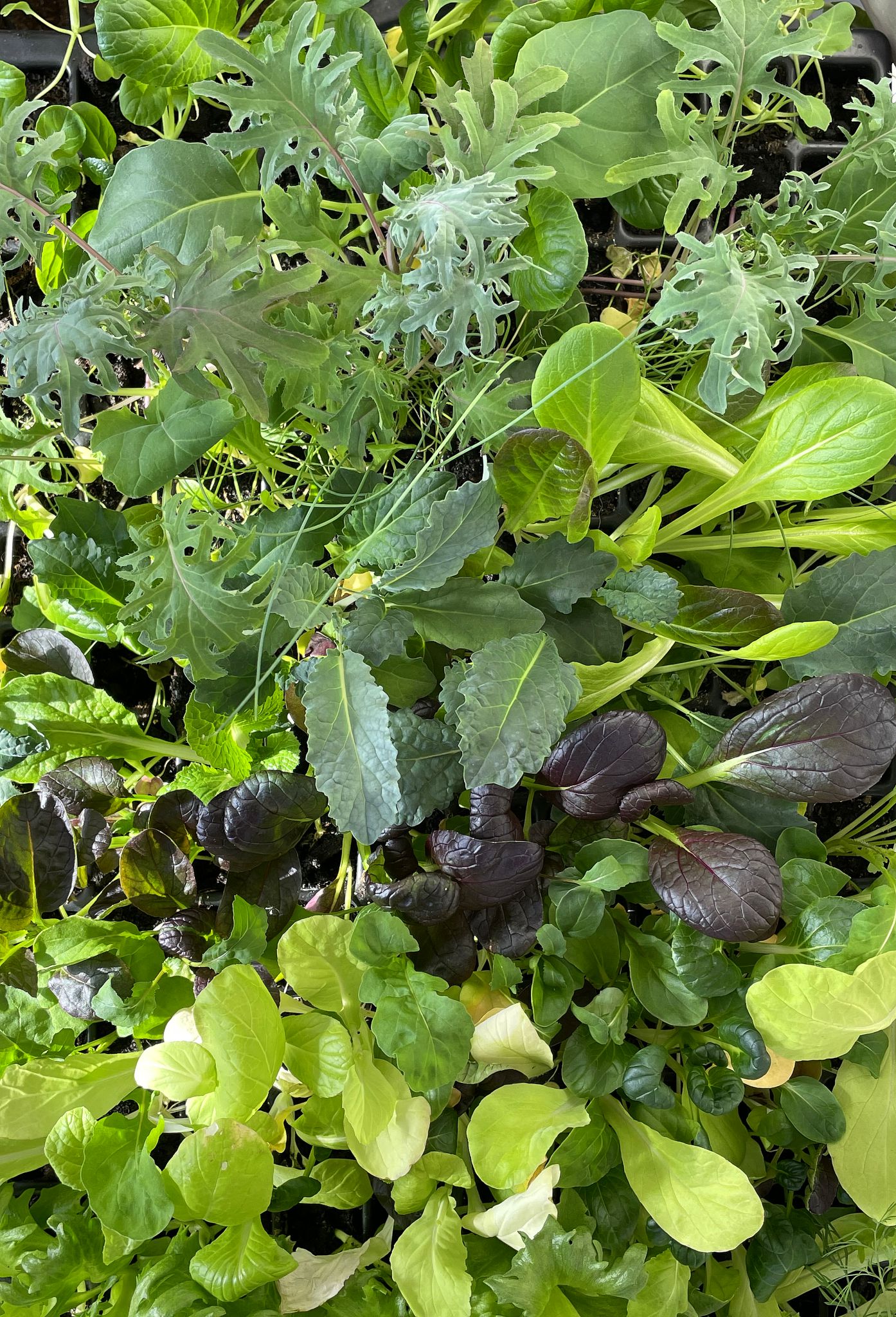 Så här ser växterna i pluggbrättet ut. Pluggbrätte är en bricka med massor av små sammanfogade celler. En växt växer i varje cell.