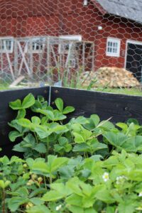 Jordgubbar och smultron trivs fint i pallkragar och kan planteras hela sommaren.