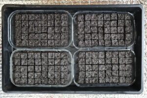 160 prima små soil blocker från Micro 20. I dessa har jag sått tidiga sommarblommor.