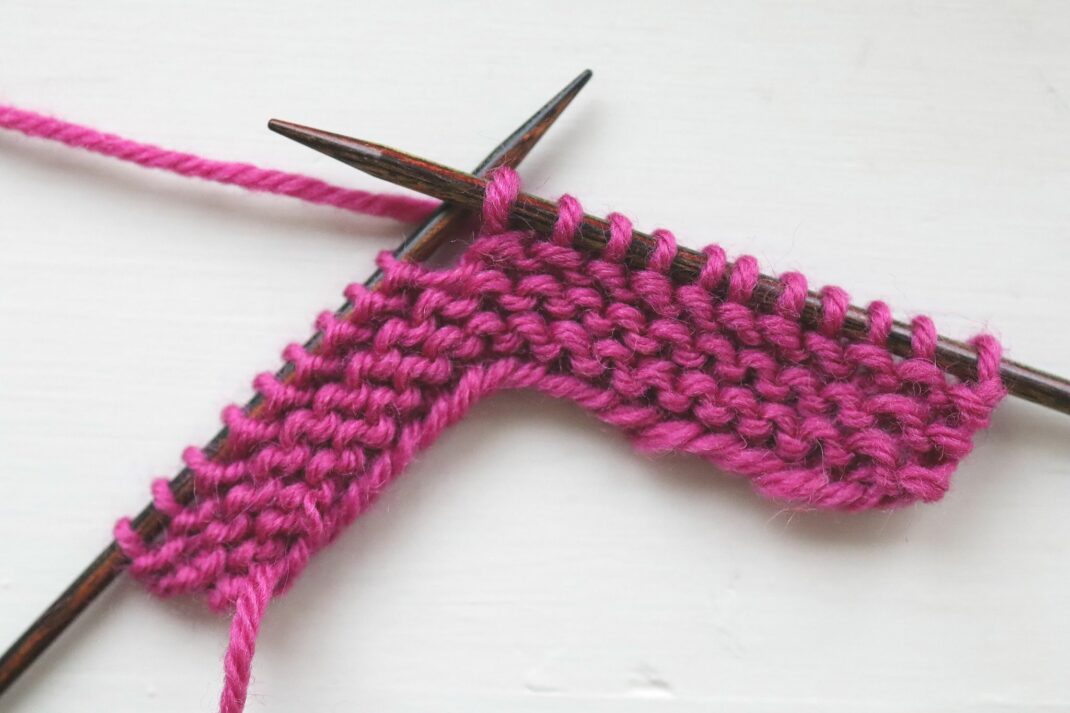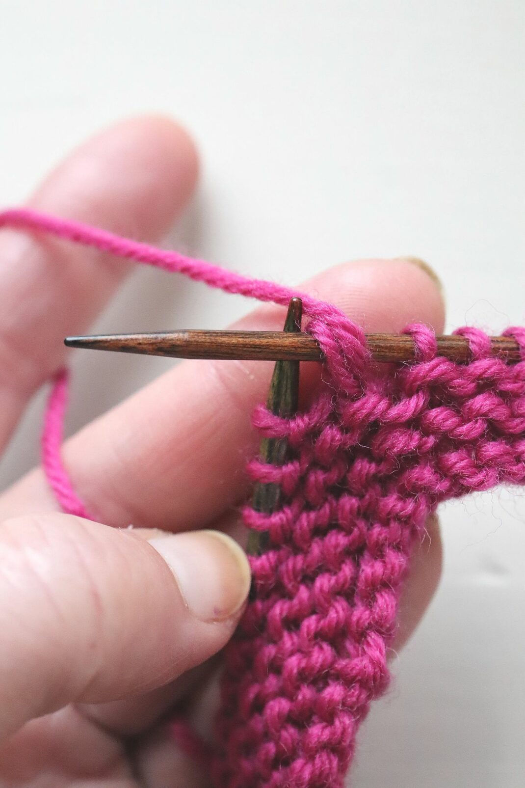9. Sticka rätstickning fram till den maska där du tänkt vända ditt arbete mitt i varvet.