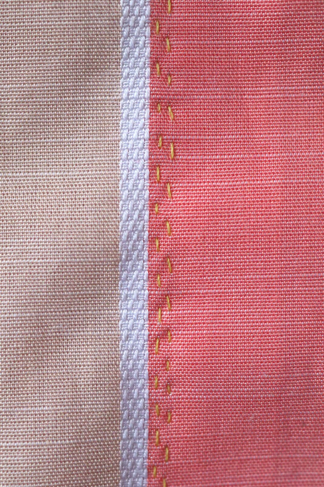 Alla sömmar som sammanfogar delar görs med en fransk söm/french seam. På det sättet behöver jag inte kasta/sicksacka kanterna. Sicksack ser inte så fint ut på ett tjusigt plagg och särskilt inte när sömmen görs för hand. Se hur det går till att göra en fransk söm nedan.