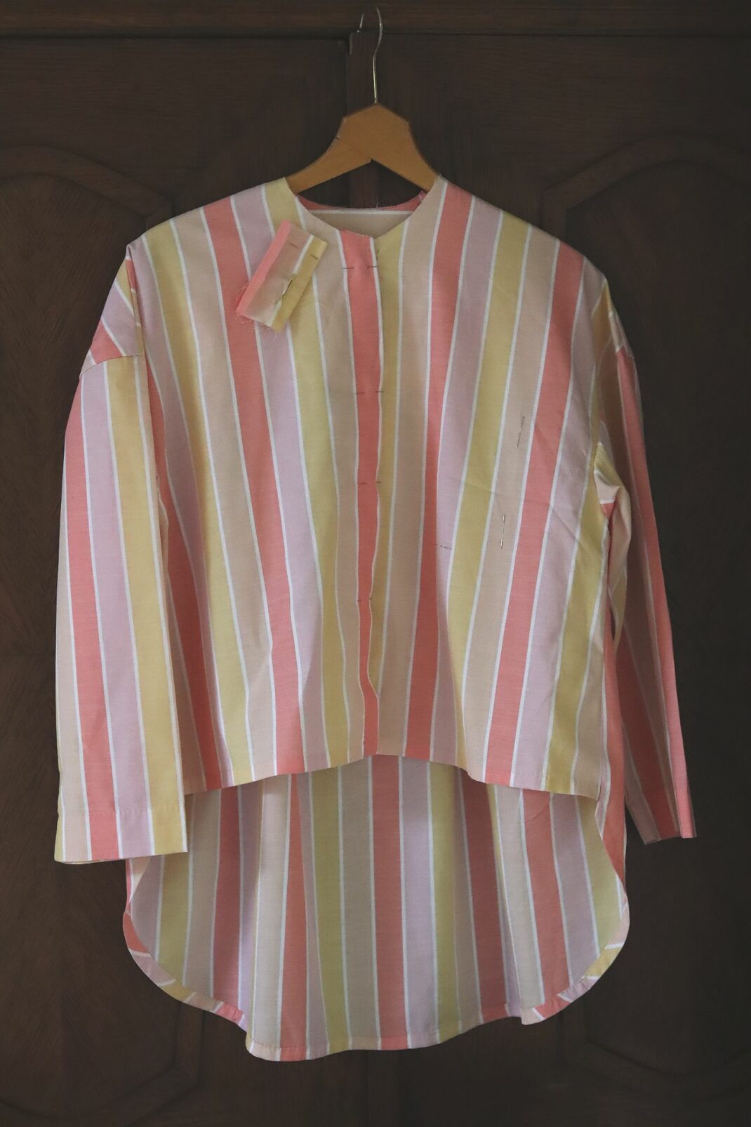 Det här plagget skulle vara mitt projekt på resa under vinterns föredragsresor. Tyget är valt för att möta våren och det var då jag räknat med att ha den japanska skjortan klar.