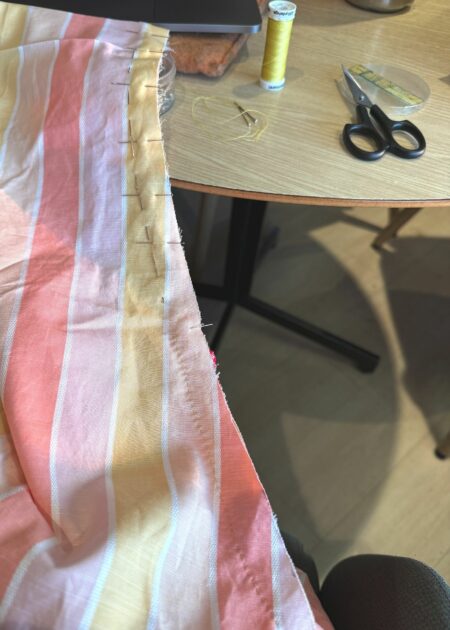 Bak- och framstycke fållas och sys med förstygn, ej dolda stygn. Jag tycker detta ser så genomarbetat och fint ut. När nu arbetet ändå sys förhand vill jag att det ska synas.
