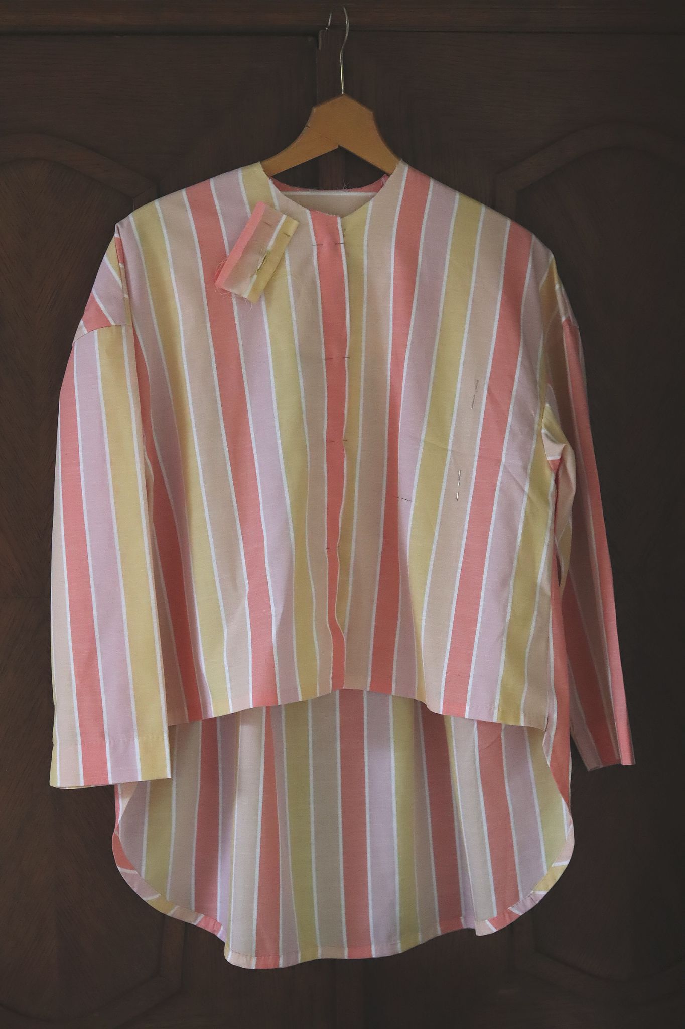 Så långt jag kom på plagget under min andra "sömnads-resa". Kvar är krage och sista knapphål och knapp.