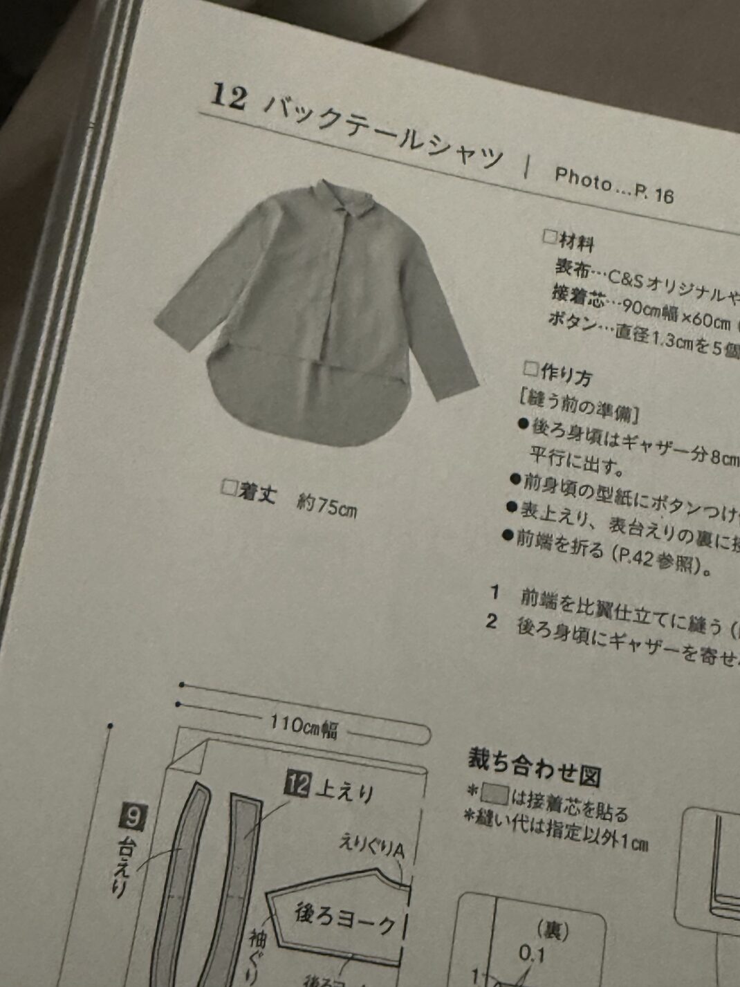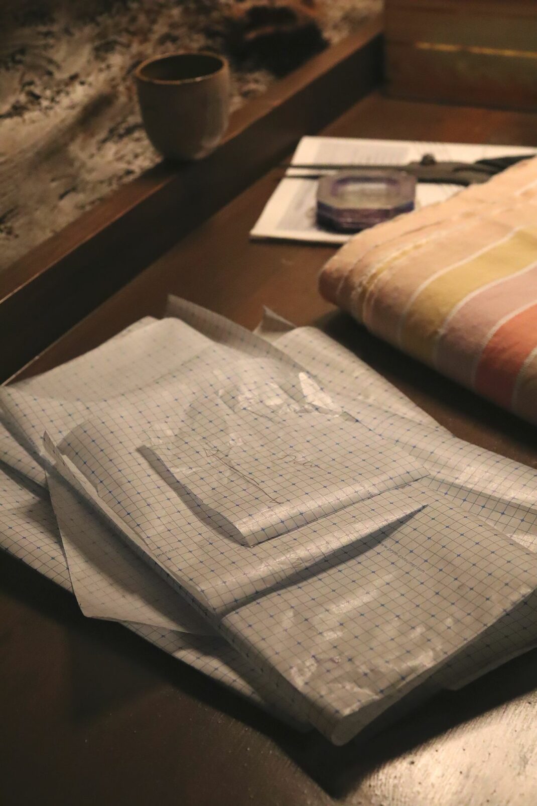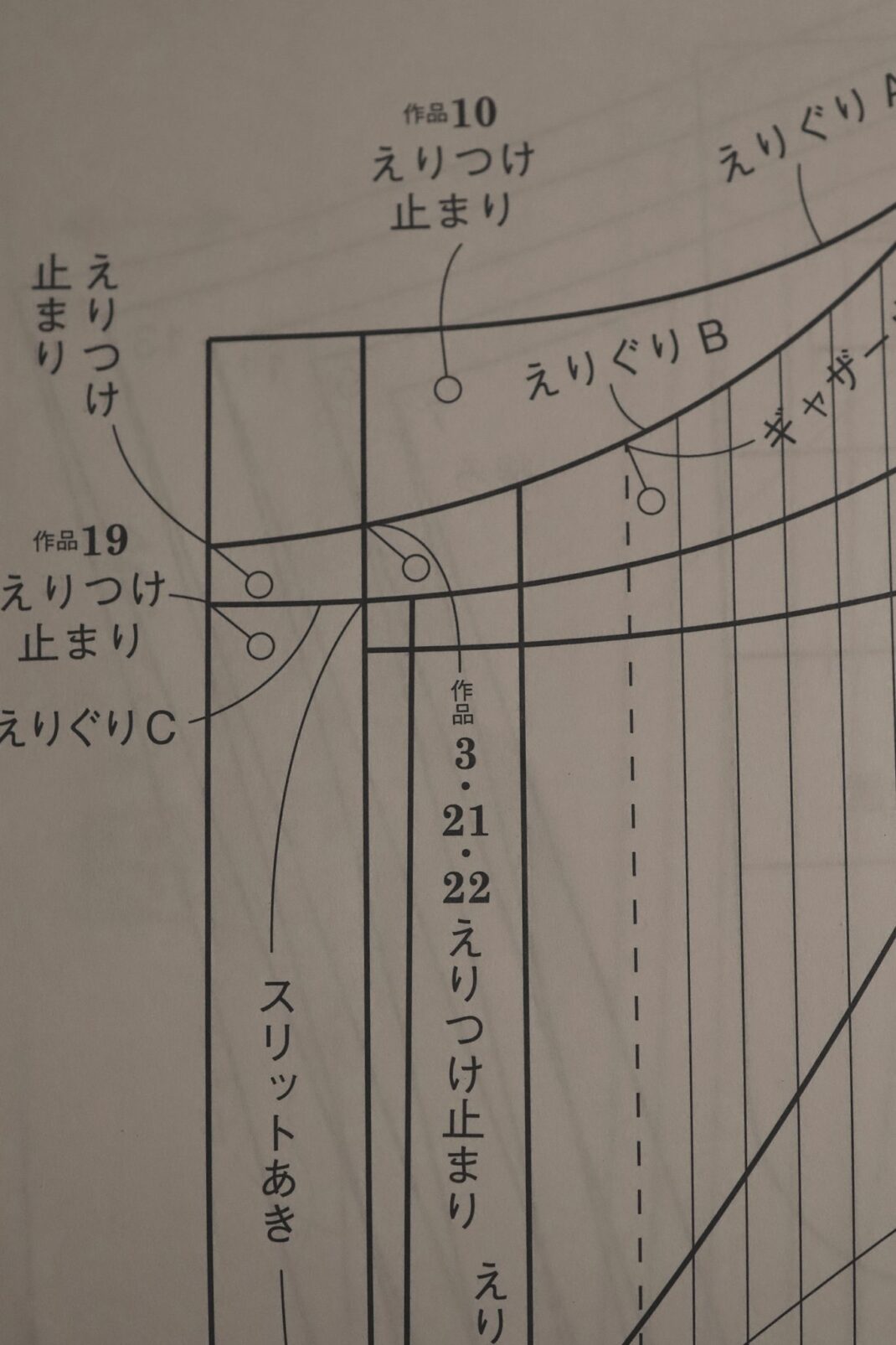 Innan tyget klipps ut måste jag kika extremt noga i mönsterbeskrivningen, där det till exempel anges att det ska vara några extra centimeter för rynkor eller knappslå eller så. Eftersom allting är på japanska blir det extra många moment att hålla koll på.