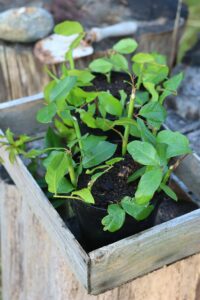 De färdiga krukorna har fått åka hem till Småland och står nu i skugga på norrsidan för att rota sig. Utomhus.