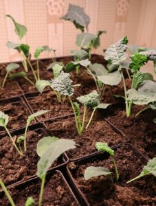 Svartkålen är precis omskolad. Om några veckor ska den planteras i mitt kalla tunnelväxthus för att ge skörd i mars-april-maj.