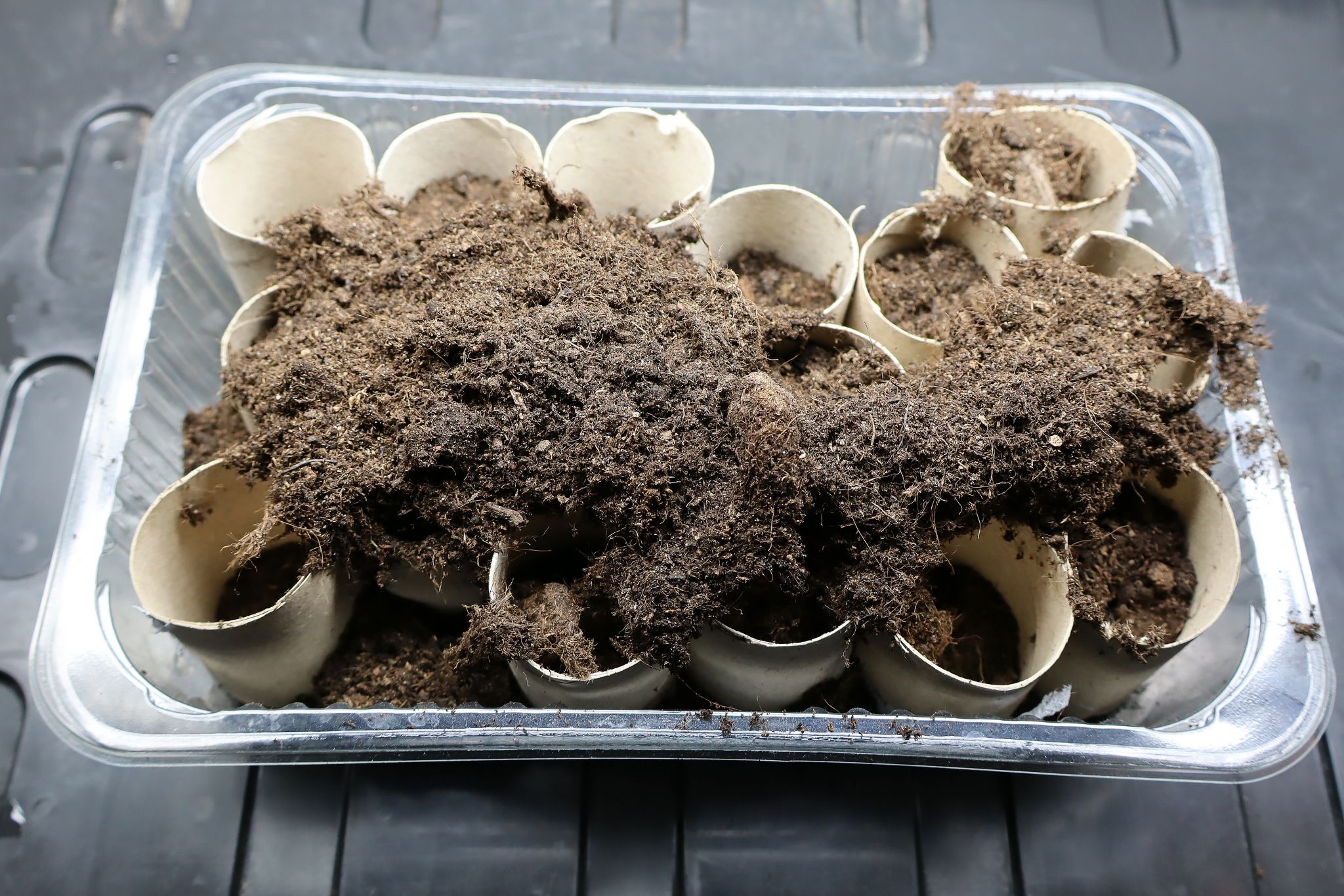 Jag langar på rejält med jord och föser ner det i rullarna och runtomkring.