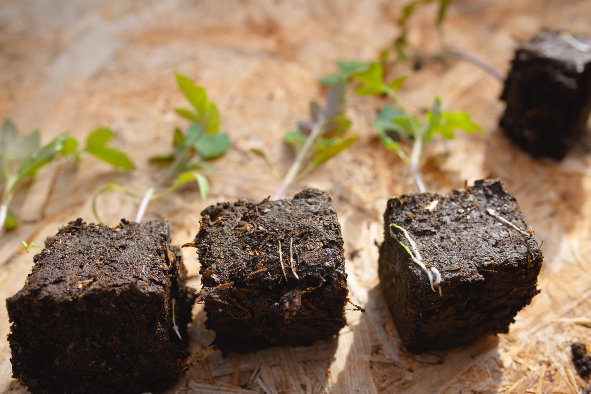 Tomatplantor planterade med soilblockers