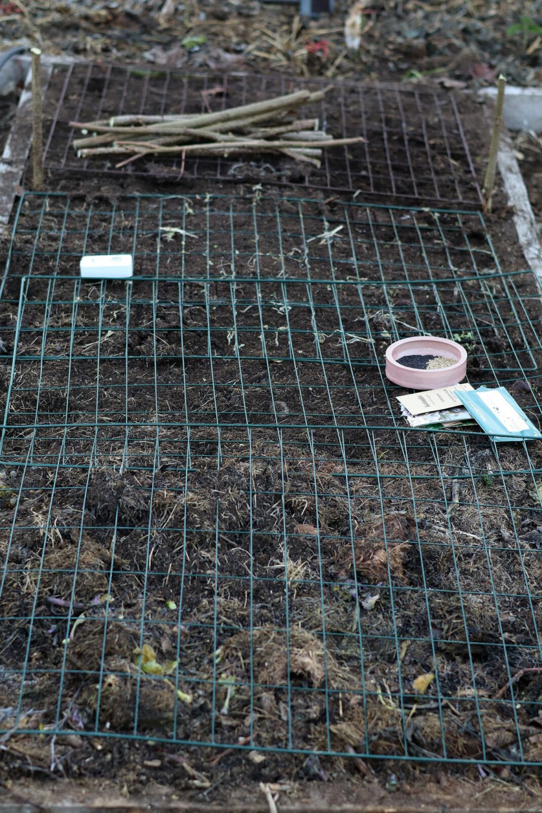 Kompostgallret hindrar katterna från att krafsa i jorden.