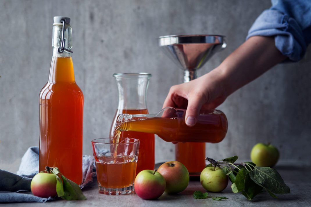 Låt äppelmusten stå över natten i ett kärl i kylskåpet och häll sedan av den klara vätskan, om du vill ha musten utan grums.